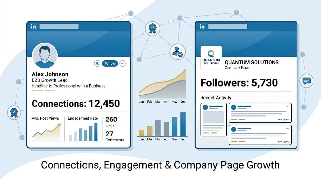 A: It can be, used carefully. Strategic support on thought-leadership posts and gradual connection growth can accelerate B2B positioning without compromising professional credibility. Heavy-handed approaches — massive connection spikes, bot comments on professional posts — actively damage reputation.