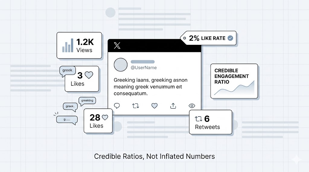 Retweets need context. A post with high retweets and low replies looks like it went viral on aggregation rather than discussion. A post with modest retweets and actual replies reads as genuinely engaging. Keep retweet numbers conservative relative to reply activity.